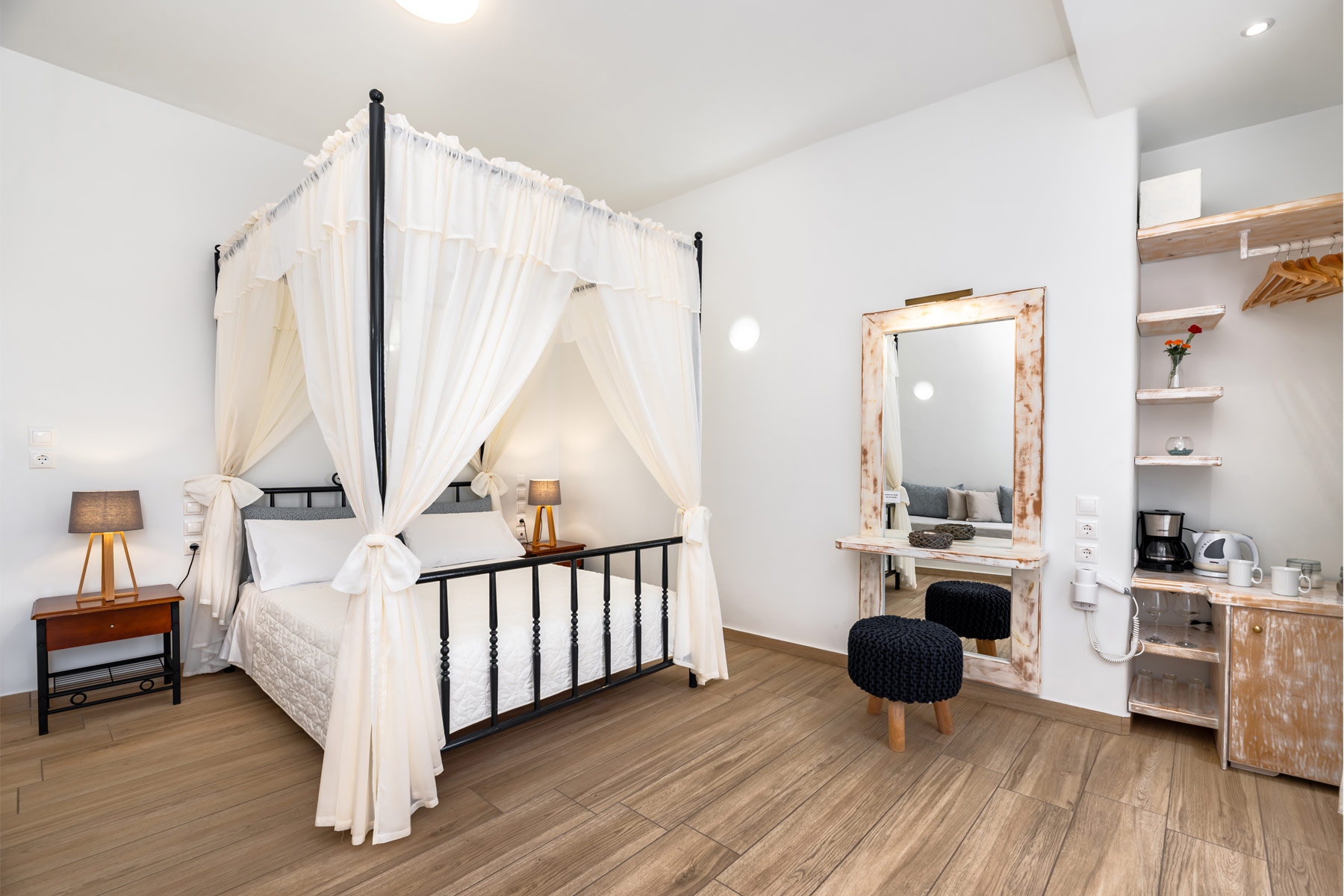 The Hotel Thira Junior Suite is a traditionally decorated, elegant accommodation proposal in Santorini. Couples seeking a romantic retreat will find in the Junior Suite’s indoor and outdoor premises an authentic Santorinian accommodation to relax and enjoy their holidays in Santorini. If you are looking for a nice suite with traditional and modern references check out all the details of Hotel Thira’s Junior Suites.